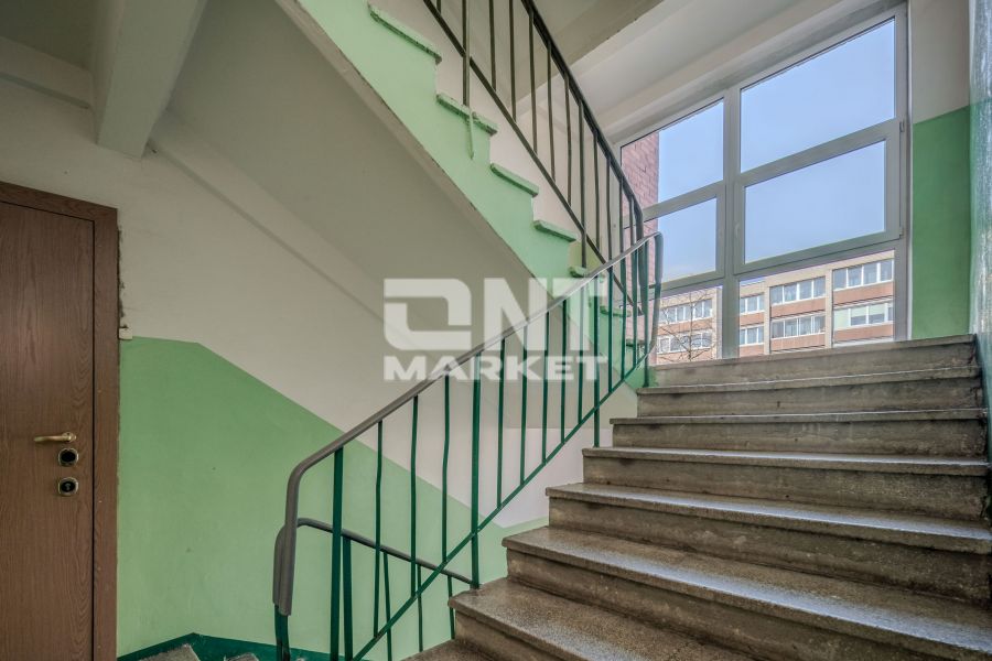 Tvarkinga, rakinama laiptinė su kodine spyna ir domofonu.