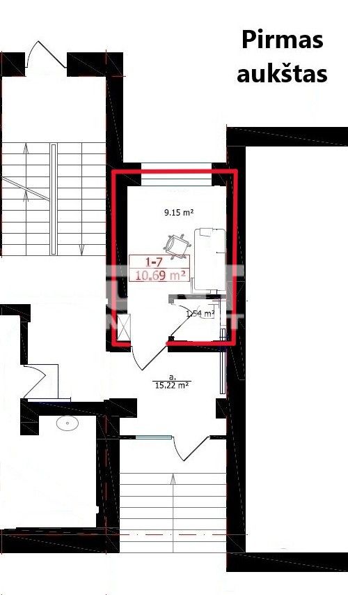 Parduodama 10.69 kv. m atskira administracinės paskirties patalpa pirmame aukšte.