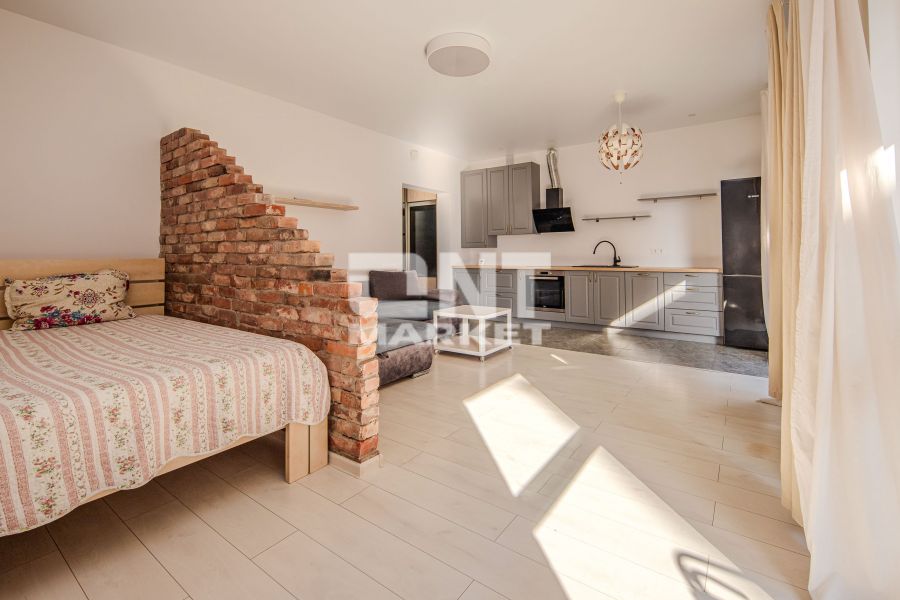 Erdvi virtuvės ir svetainės zona, atskirta miegamoji erdvė, patogus vonios kambarys ir drabužinė koridoriuje užtikrina komfortą ir patogų išplanavimą.